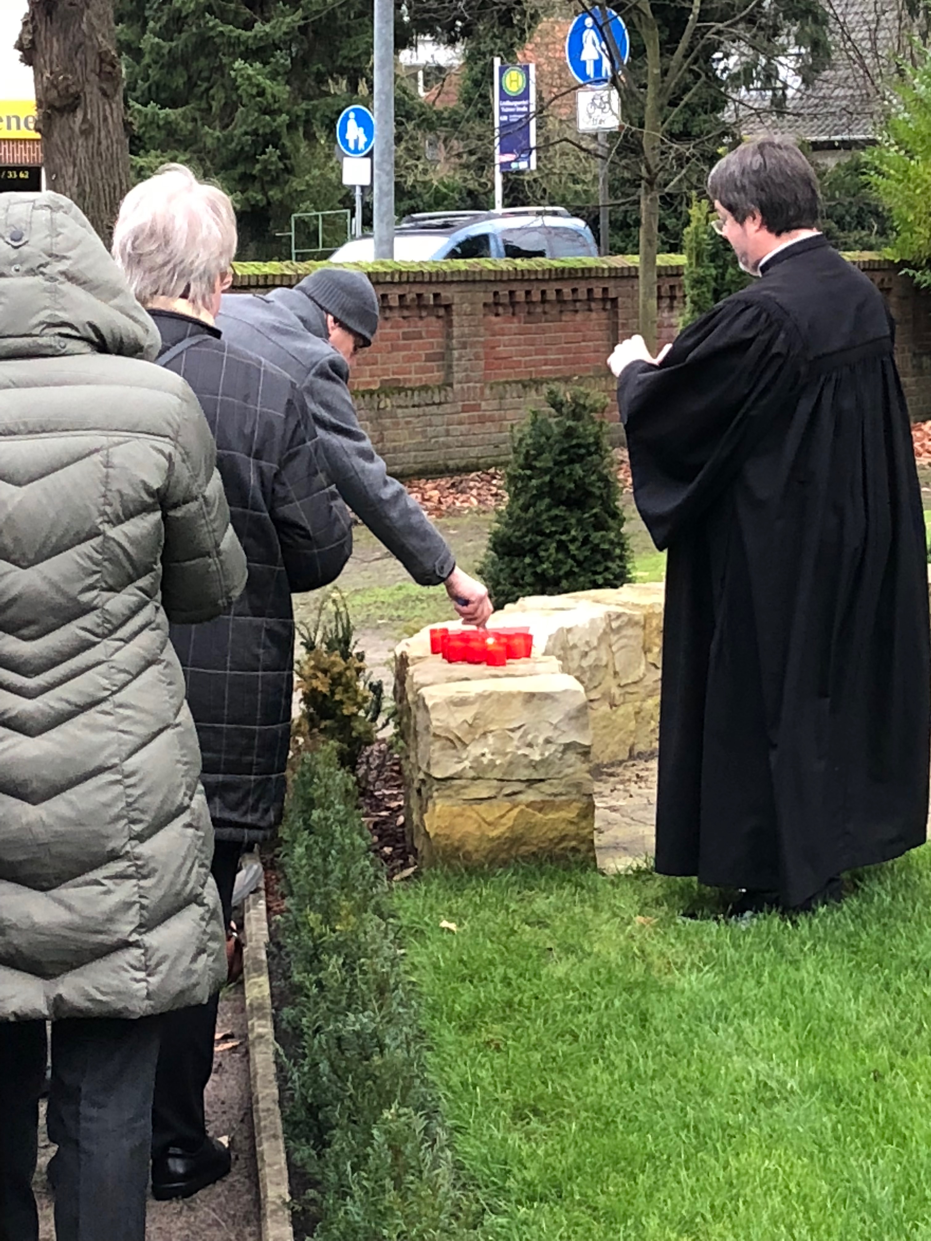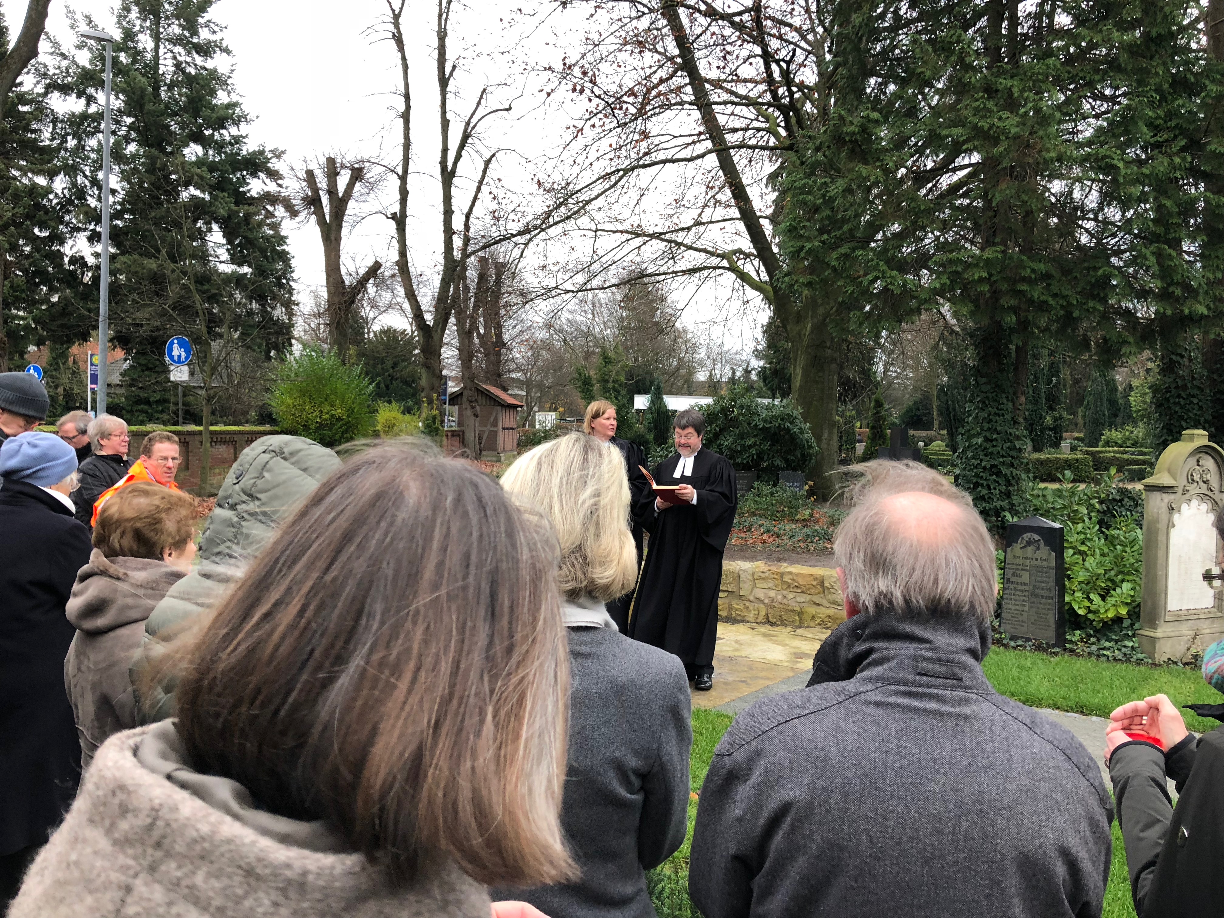 Im Anschluss an den Gottesdienst in der St.-Petri-Kirche, zog eine Gruppe von Gemeindemitgliedern unter der Führung von Pastorin Bodil Reller und Pastor Jens Blume gemeinsam zum Friedhof der Kirchengemeinde. Hier entstand in den letzten Monaten eine neue Grabanlage, die im Frühjahr 2018 für Urnenbestattungen zur Verfügung stehen wird.