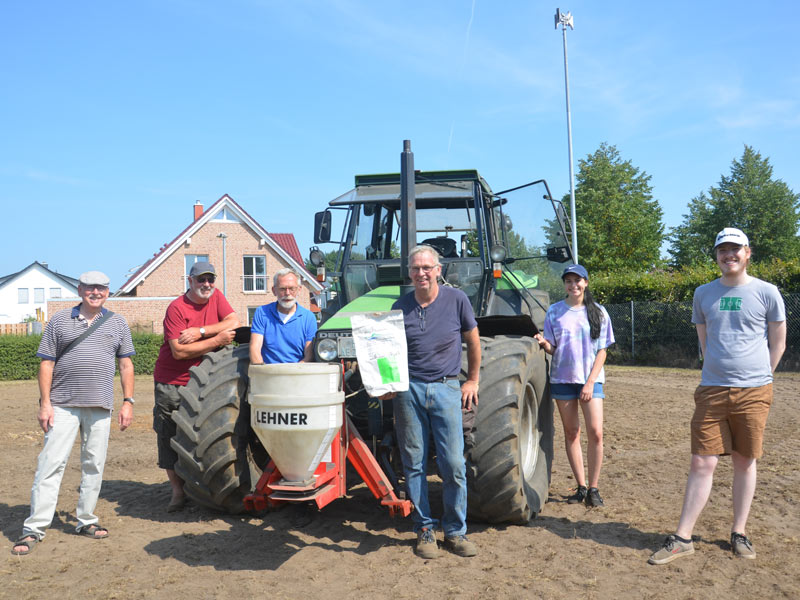 „Die Saatgutmischung ‚Blühende Landschaft‘ kann die Nahrungsversorgung von Wildbienen, Honigbienen, Schmetterlingen und anderen blütenbesuchenden Insekten nachhaltig verbessern. Diese Insekten wiederum übernehmen eine wesentliche Funktion bei der Bestäubung von Nutz- und Wildpflanzen, steigern und sichern die Erträge in Landwirtschaft und Gartenbau“, heißt es auf der Website der hessischen Firma, bei der Wilfried Plum, Meinolf Helling und Thomas Hahn vor ein paar Wochen zwei Kilogramm Saatgut bestellt hatten. Ihre Auswahl fiel auf die Mischung Nr. 23, die besonders für die Aussaat im Spätsommer geeignet ist und Samen von Wildblumen und Kulturpflanzen enthält.