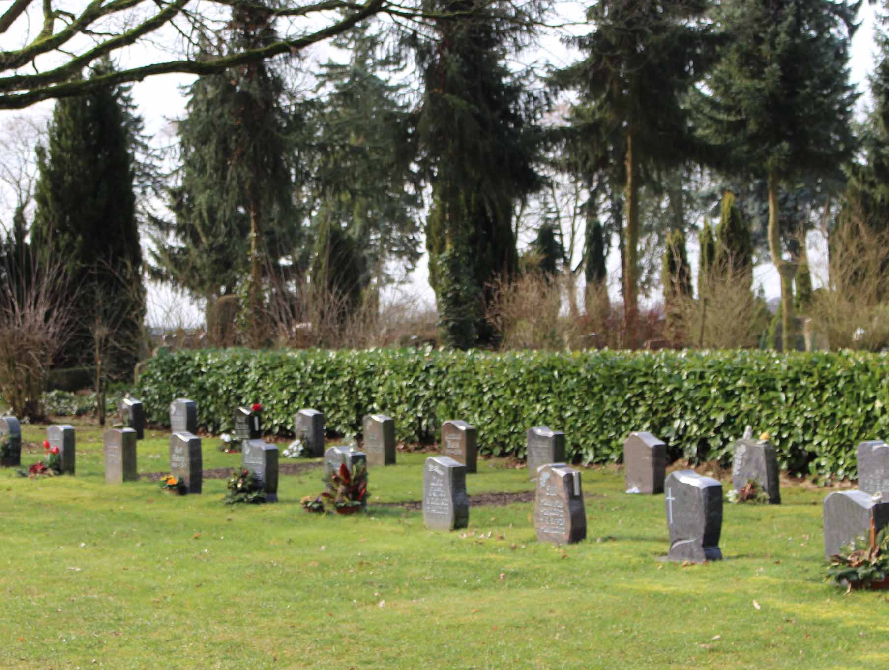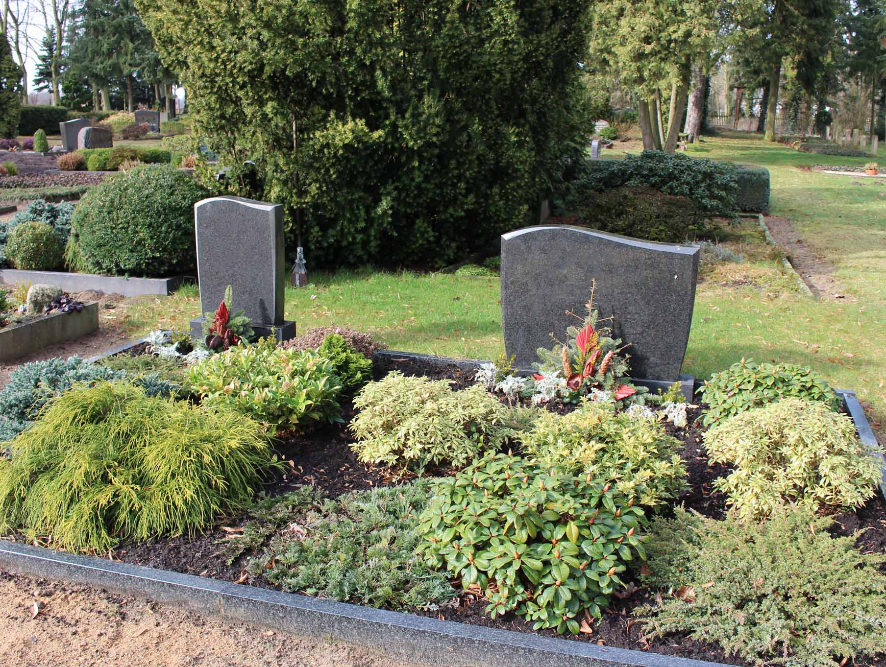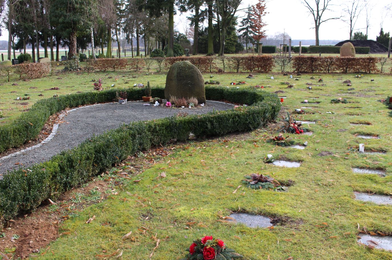 Die Grabstätten werden nicht einzeln eingefasst, aber mit einer einheitlichen Namensplatte versehen, die von der Kirchengemeinde für Sie bestellt wird.