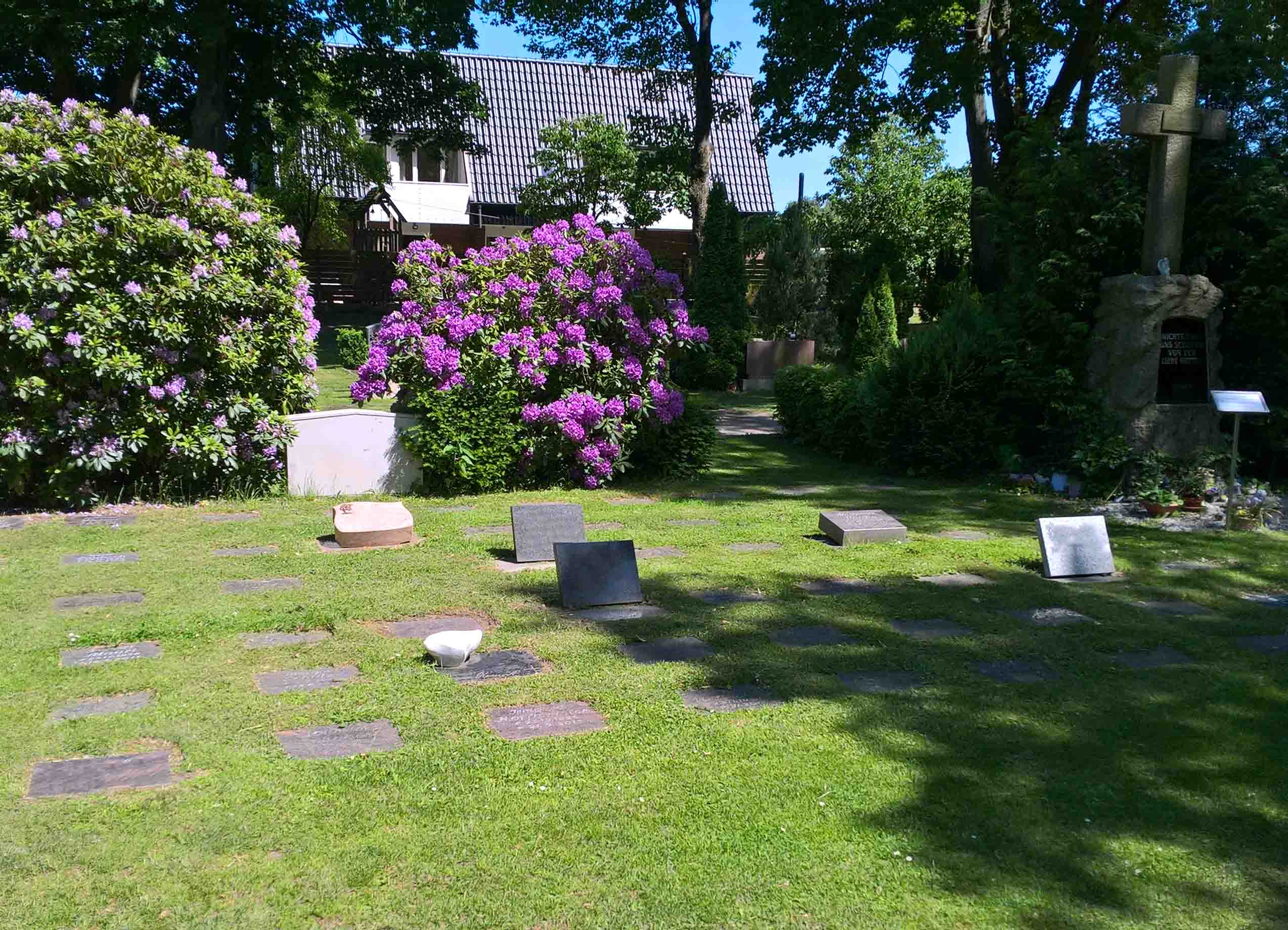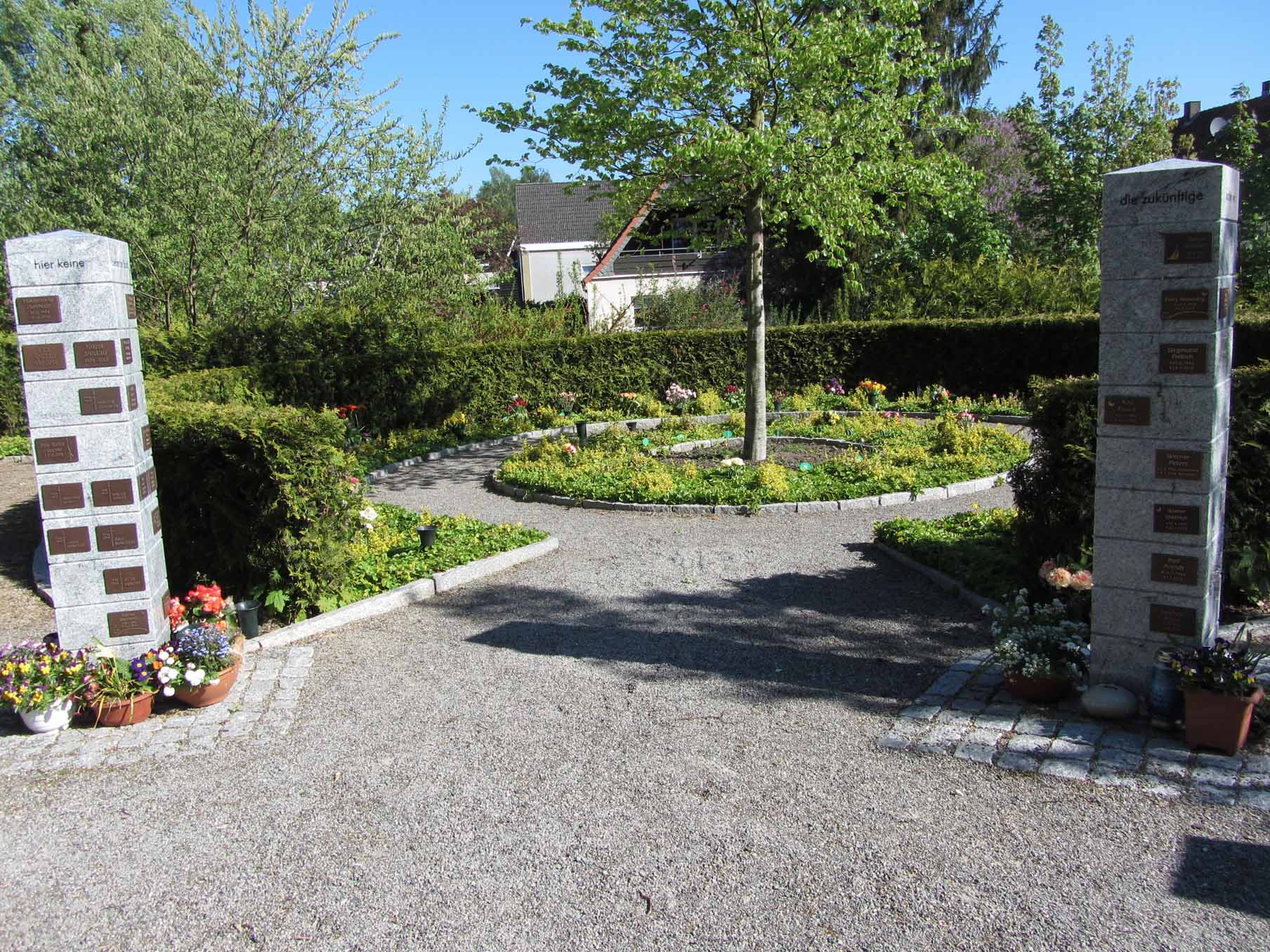 Für den Gedenkstein gelten hier besondere Gestaltungsvorschriften. Die Kosten für die Grabplatte sind nicht im Nutzungsrecht enthalten. Ein Ausschmücken von Blumen und anderen Grabutensilien direkt auf der Grabstätte ist nicht gestattet, hierfür steht ein zentraler Platz zur Verfügung.