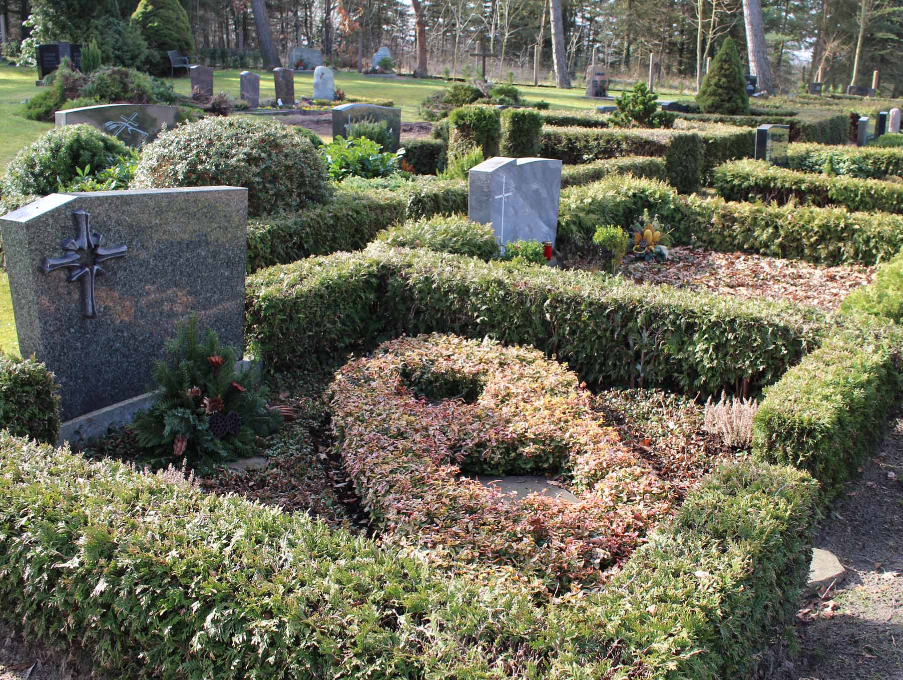 Die gesamte Anlage wird von der Kirchengemeinde mit Rasen eingesät. Die Pflege ist dabei inbegriffen und wird von der Kirchengemeinde vorgenommen.