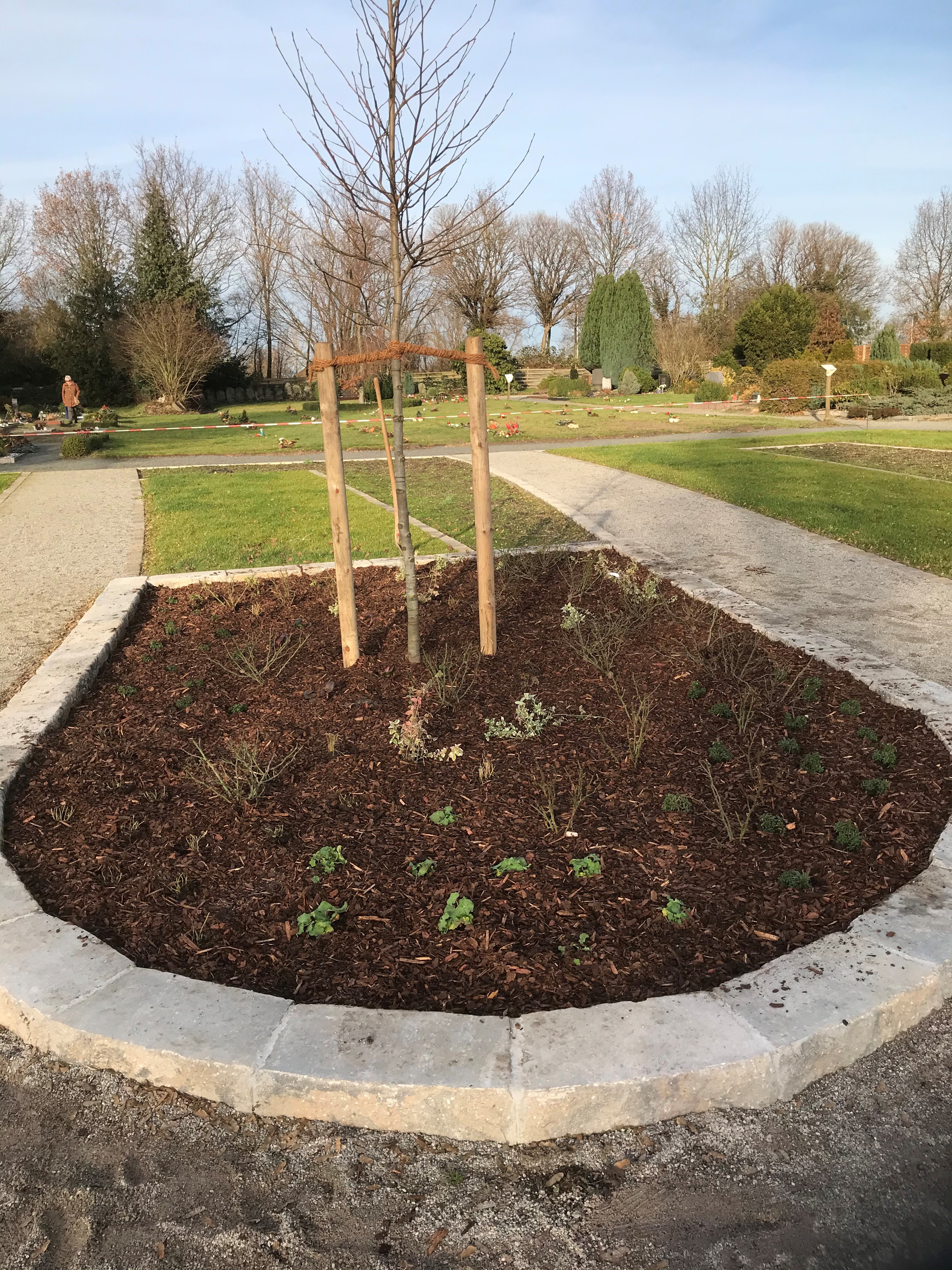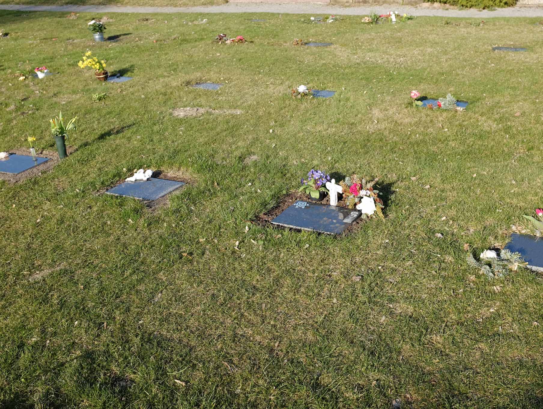 Alle Grabstellen werden mit liegenden Grabmalen versehen. Die Kosten für die Anschaffung sind in der normalen Gebühr bereits inbegriffen und die Bestellung wird von der Kirchengemeinde übernommen. Für das Ablegen von Grabschmuck steht ein zentraler Gedenkplatz zur Verfügung.